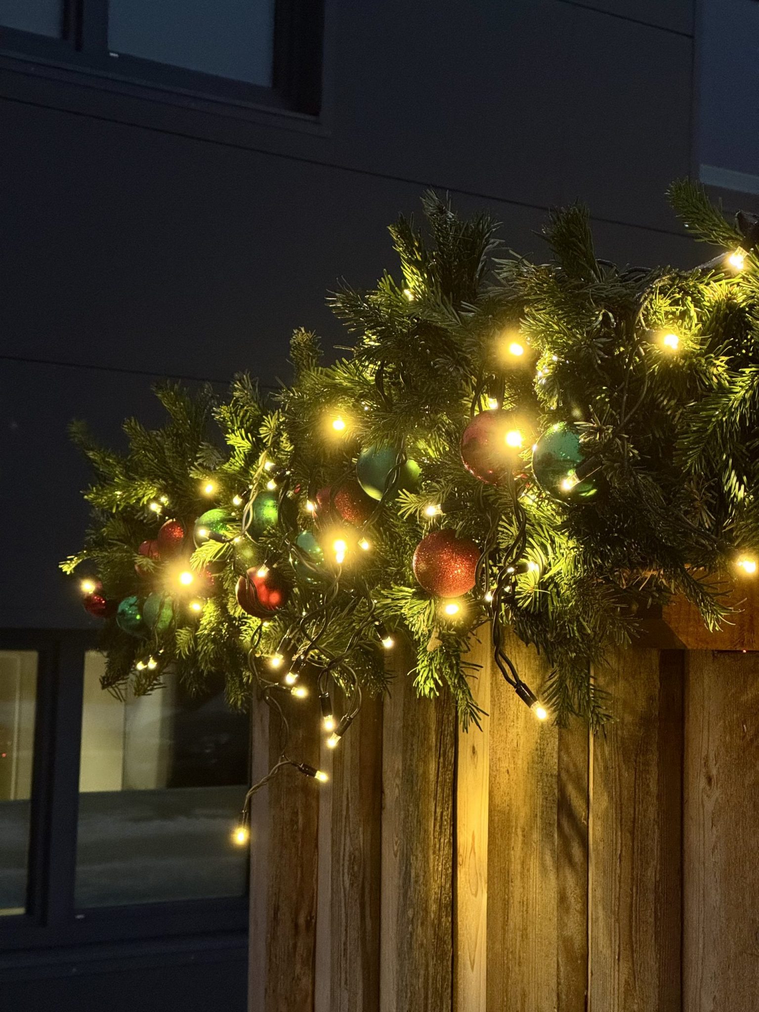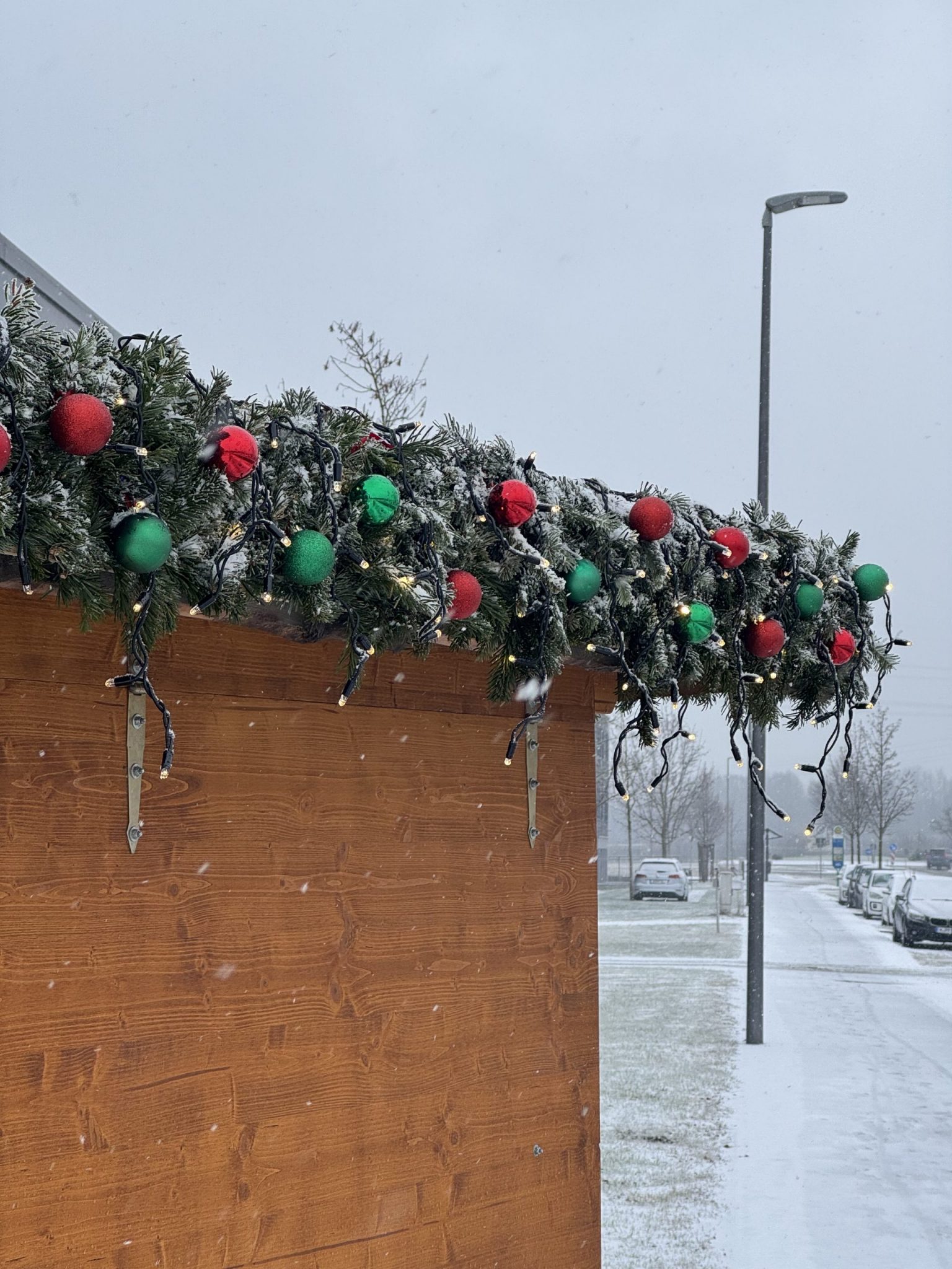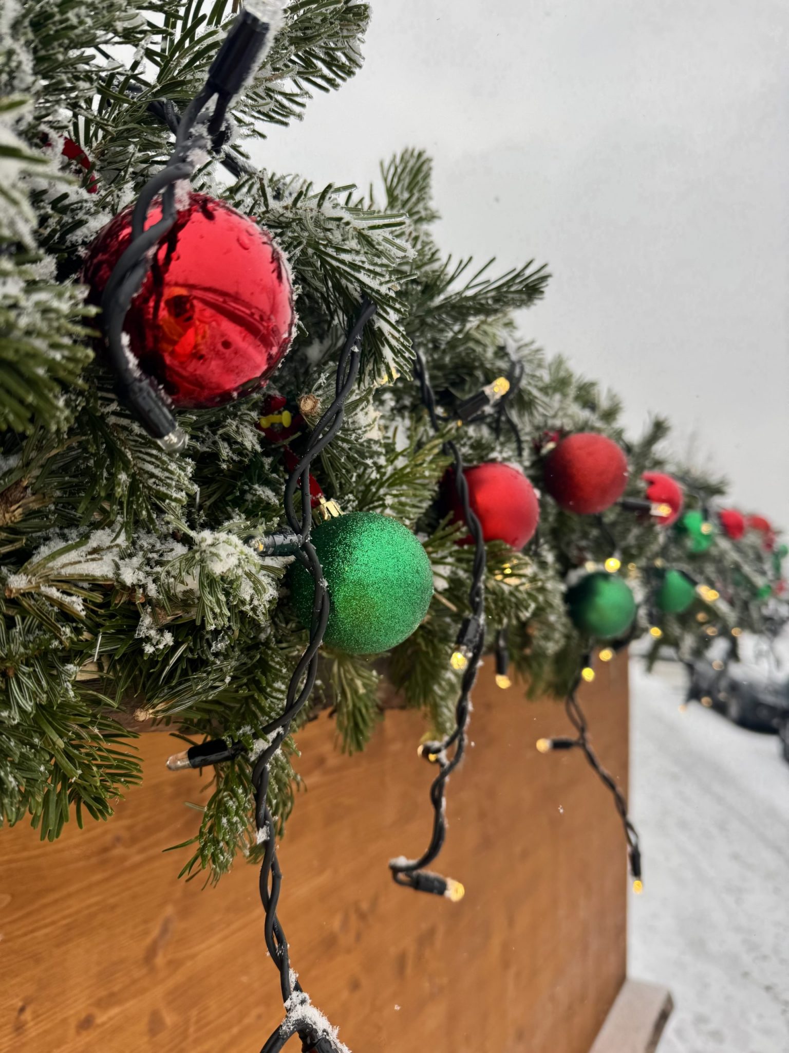 Deko Paket 3: Dekoration für Altholzhütten – mit Tannenzweigen + LED Lichterkette + Kugeln
