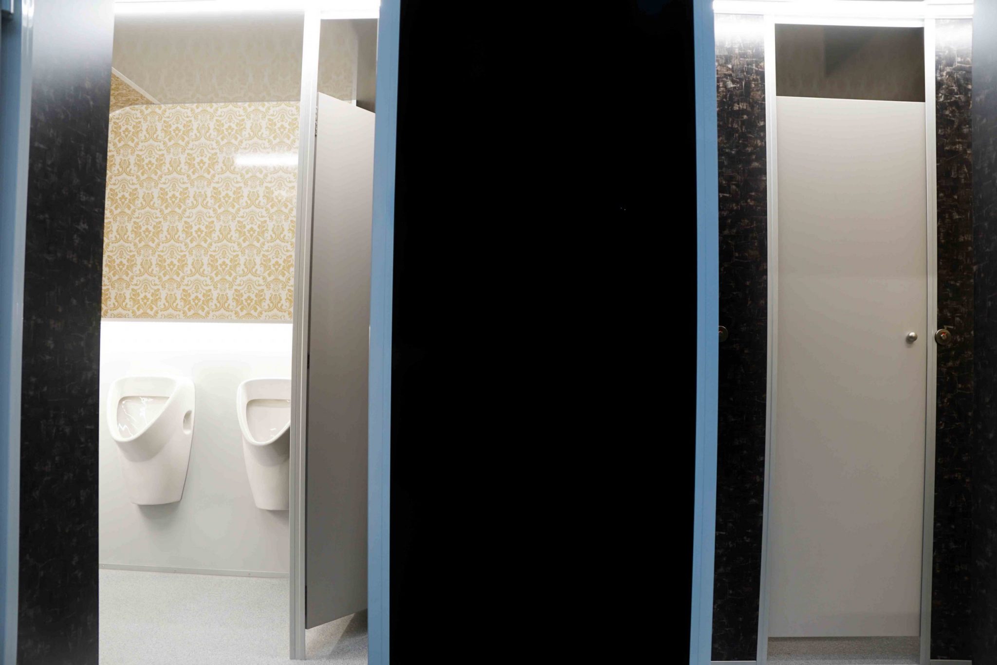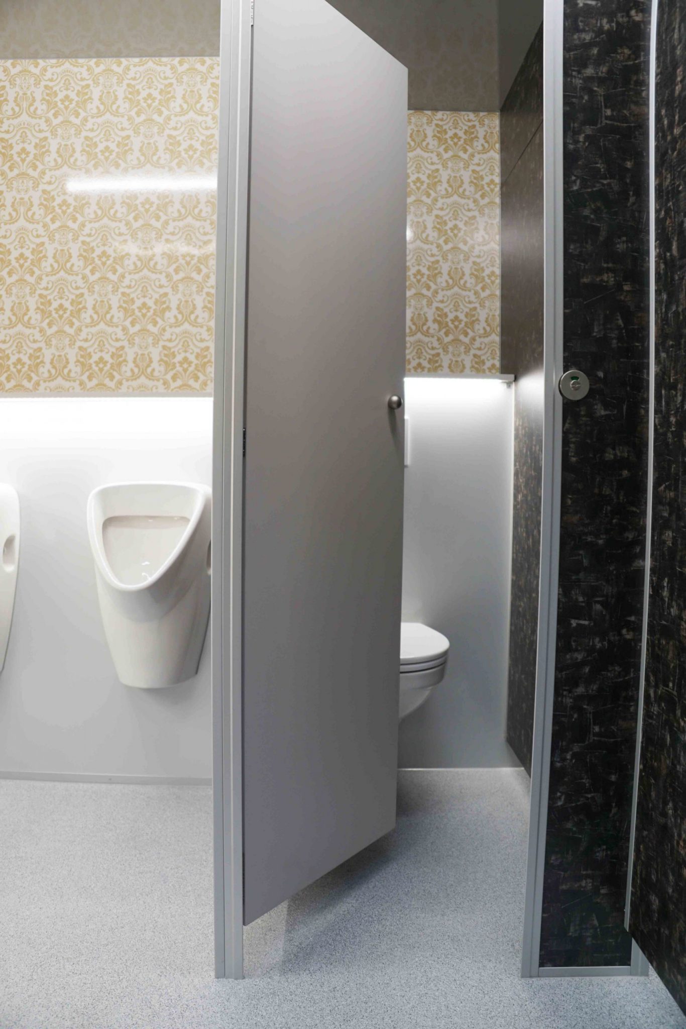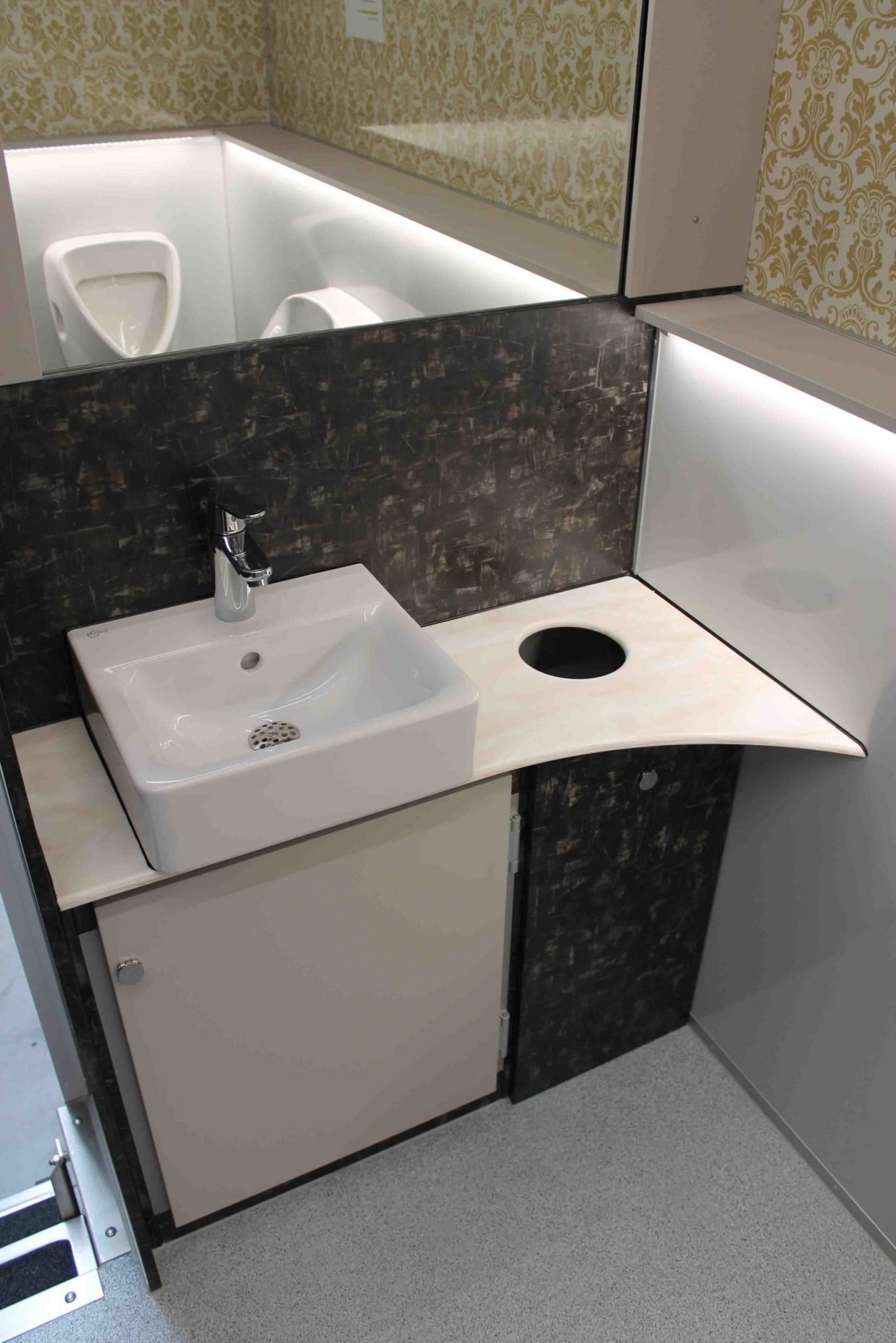 – HERREN: 1 x WC, 3 x Urinal, 1 x Waschbecken, Seifenspender , Papierspender, Heizung, LED-Beleuchtung und Spiegel