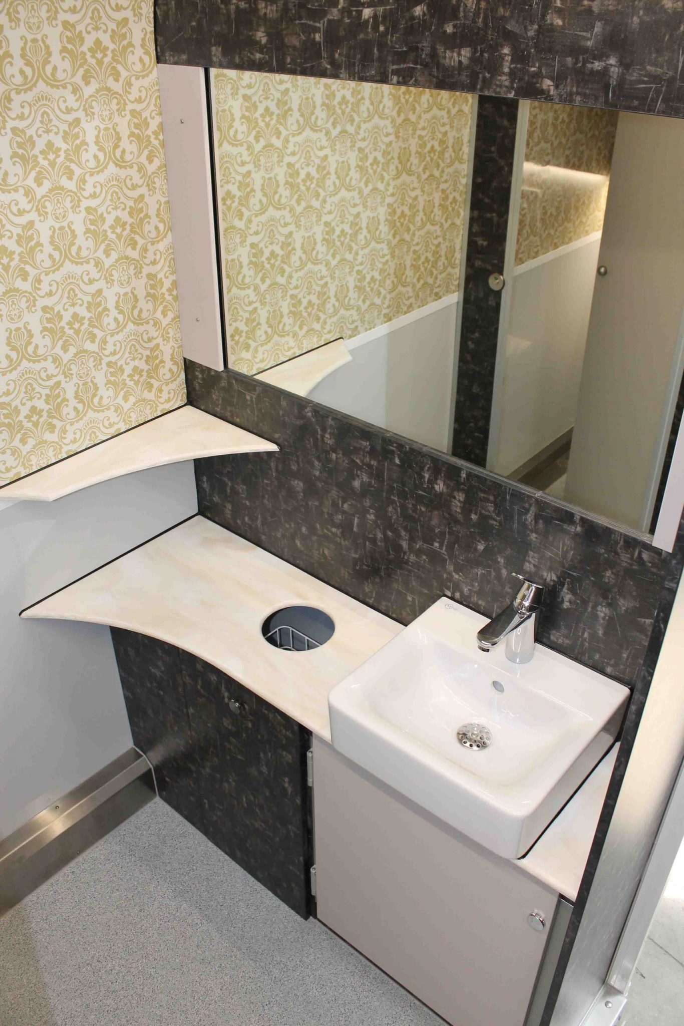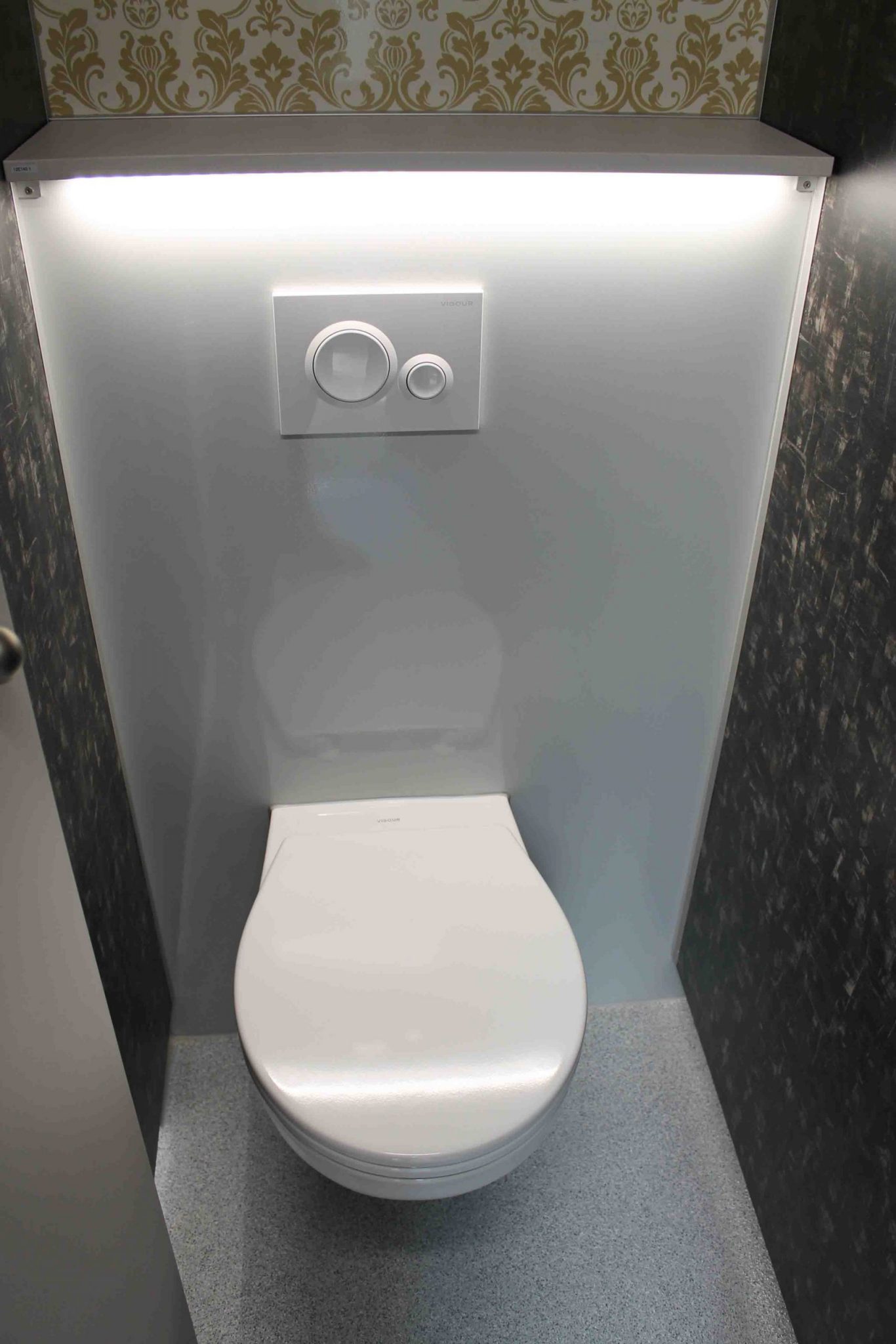 – DAMEN: 3 x WC, 1 x Waschbecken, Seifenspender , Papierspender, Heizung, LED-Beleuchtung und Spiegel
