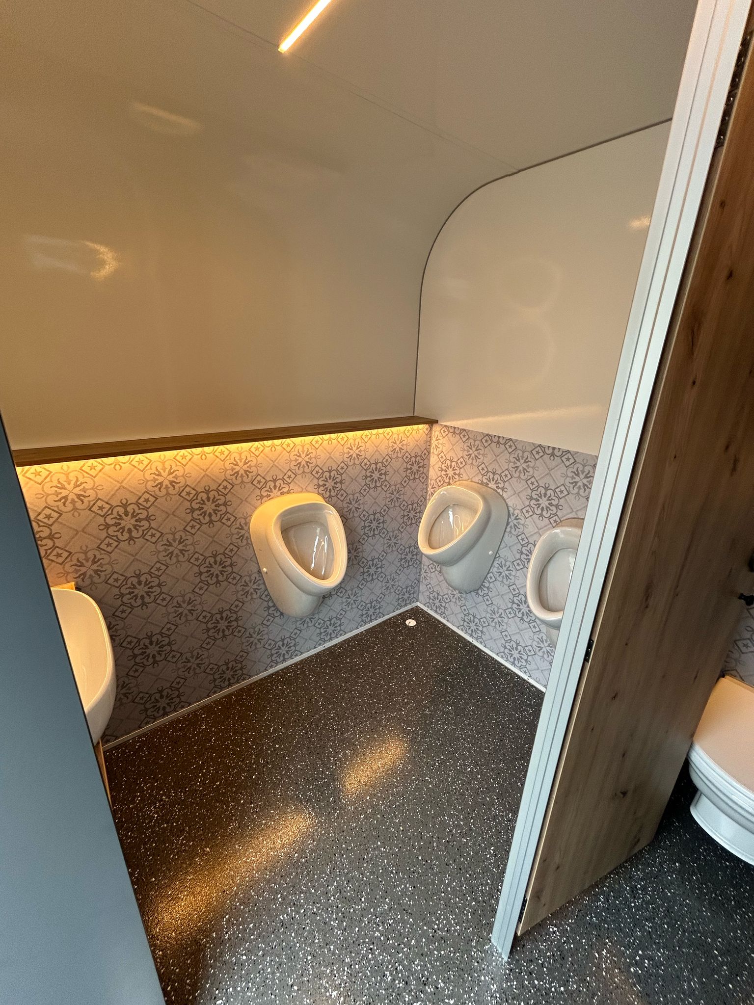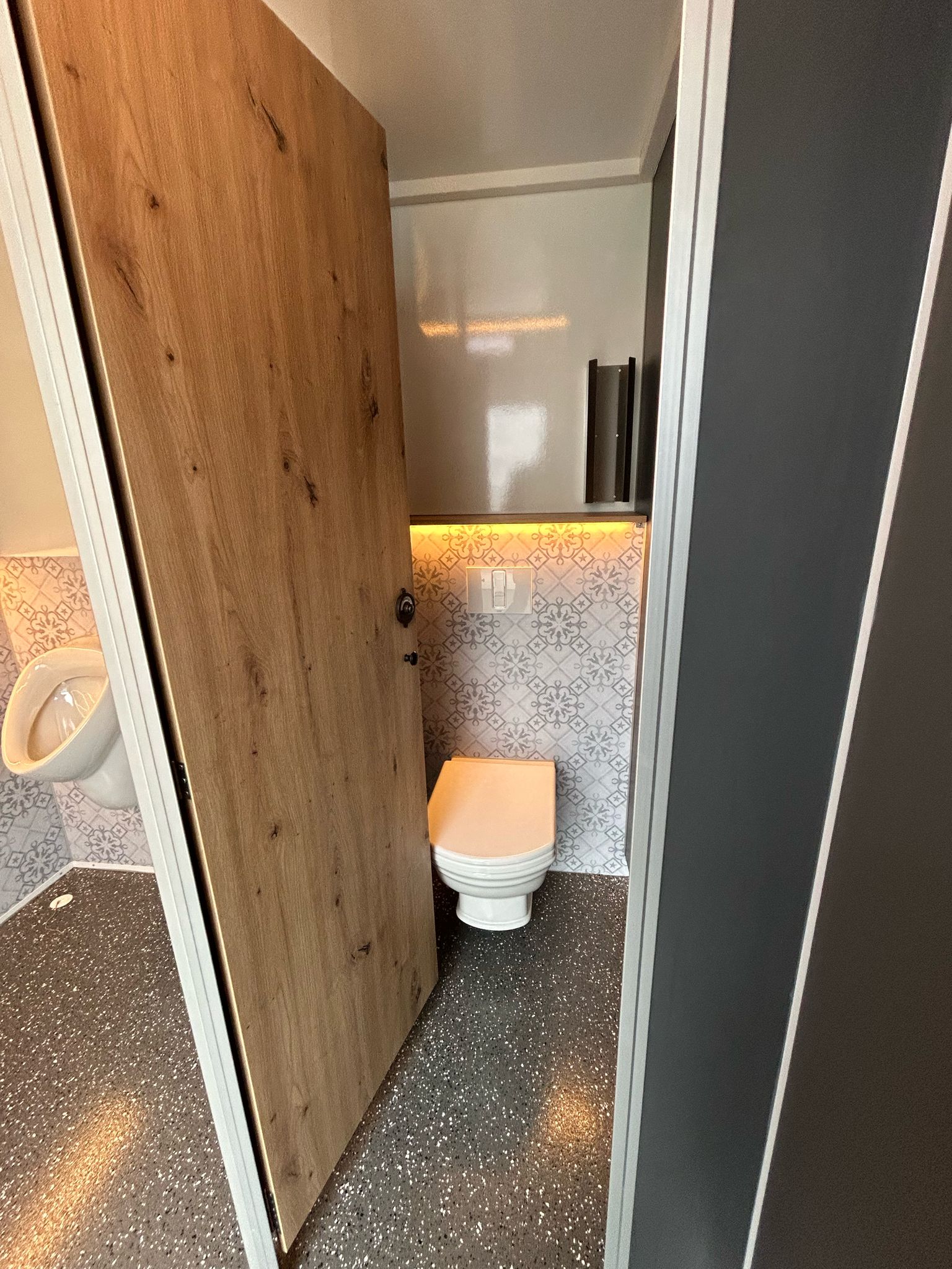 – HERREN: 1 x WC, 3 x Urinal, 1 x Waschbecken, Seifenspender , Papierspender, Heizung, LED-Beleuchtung und Spiegel