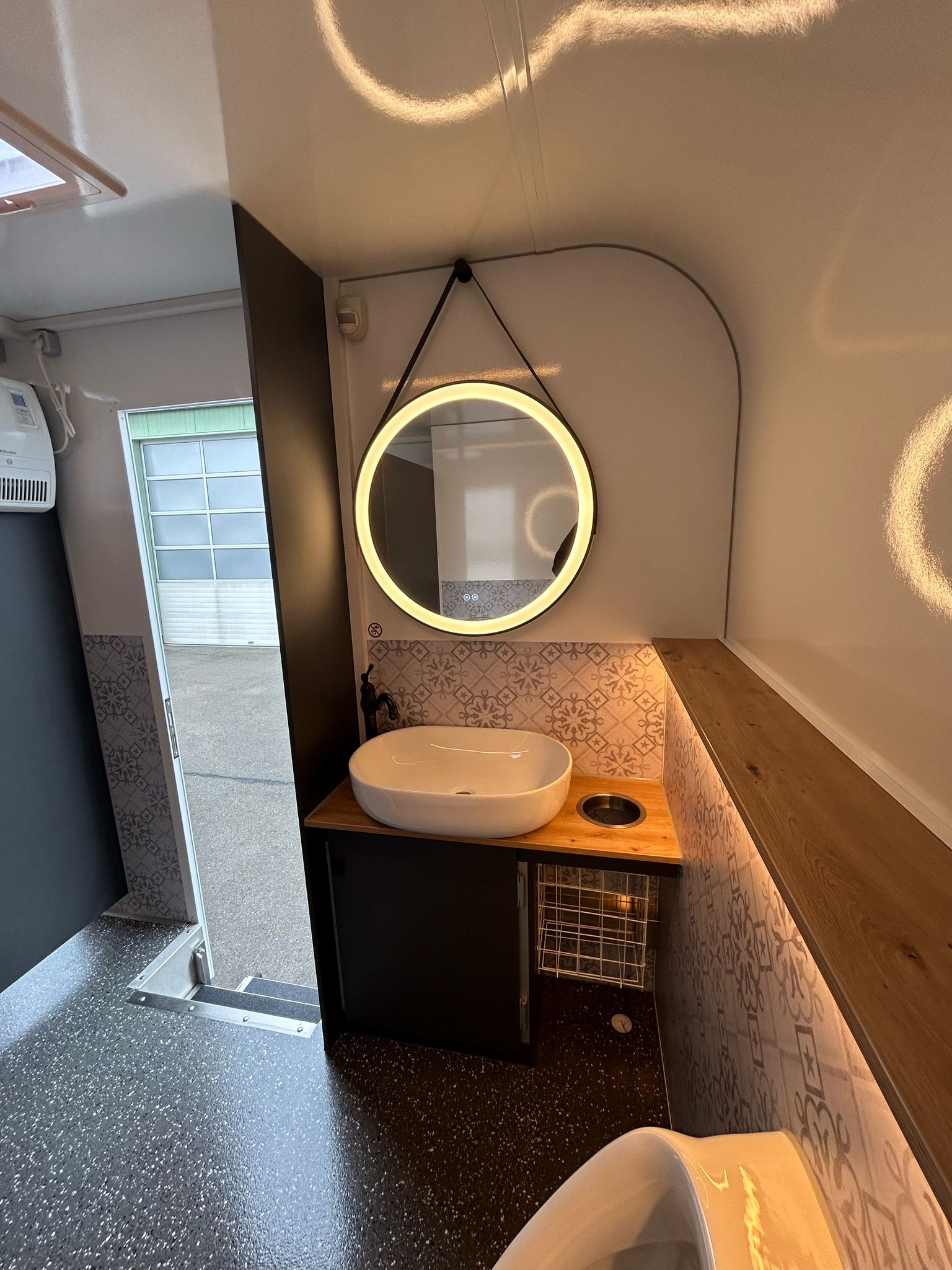 – DAMEN: 3 x WC, 1 x Waschbecken, Seifenspender , Papierspender, Heizung, LED-Beleuchtung und Spiegel